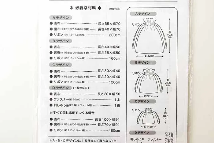 パターン・型紙 巾着袋セット