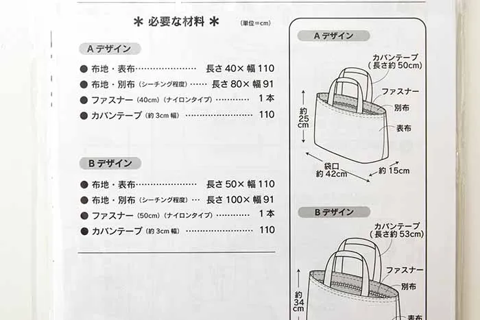 パターン・型紙 ファスナー付きトートバック