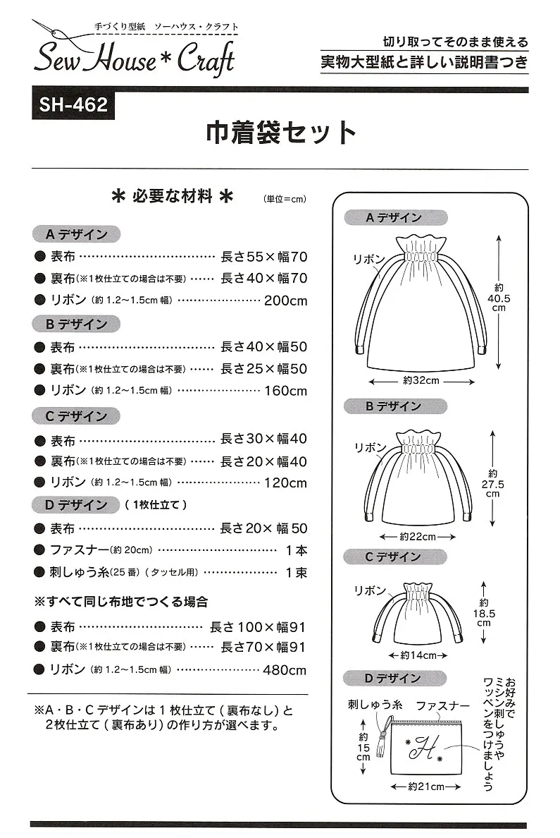 パターン 型紙 巾着袋セット