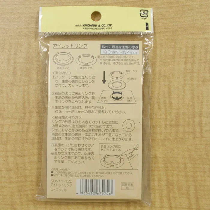 バッグや壁掛け、エプロンなどなど…いろいろな用途に使えるリングです。