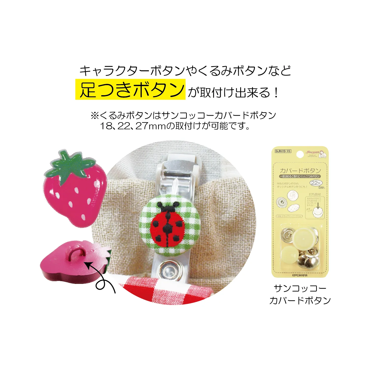くるみボタンはサンコッコーカバードボタン18、22、27mmの取付けが可能です。