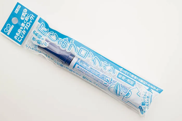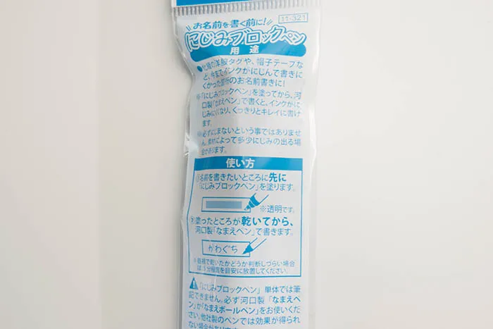 「にじみブロックペン」うを塗ってから名前ペンで書くことで、インクがにじみにくくなります。
