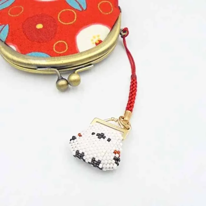 ■出来上がりサイズ:約2.5×3cm (がまぐちステッチ金具含む)、全長約11cm (根付け金具含む)