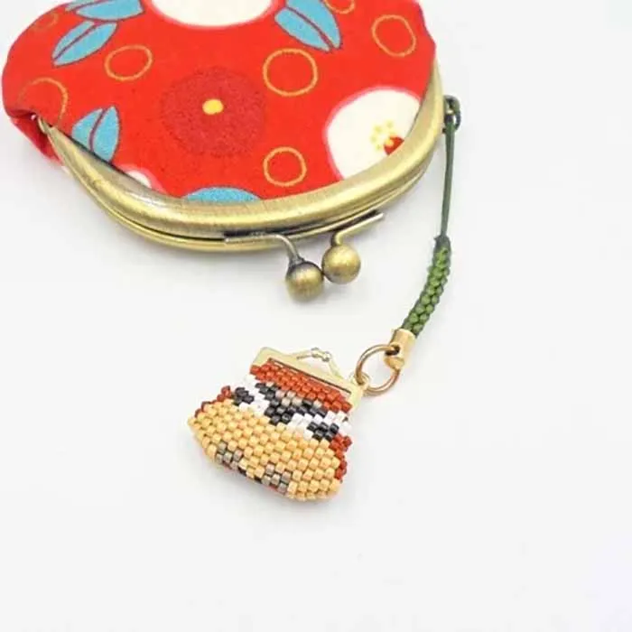 ■出来上がりサイズ:約2.5×3cm (がまぐちステッチ金具含む)、全長約11cm (根付け金具含む)