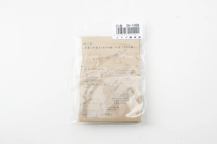 このがま口の他に、布・ボンド・ペンチ・がま口専用差し込み器具(または目打ち)をご用意ください。