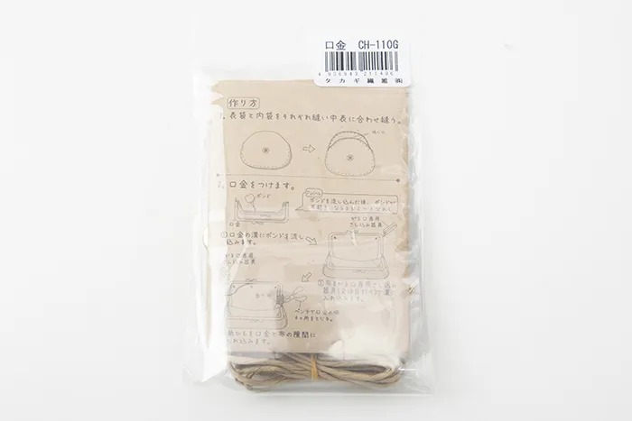 このがま口の他に、布・ボンド・ペンチ・がま口専用差し込み器具(または目打ち)をご用意ください。