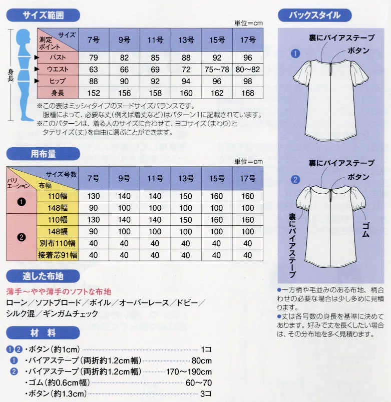 デザイン2は袖口にゴムが入った大きめのパフスリーブ。