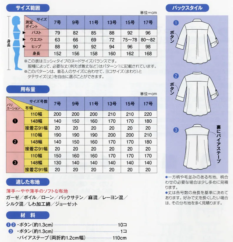 適した布地:薄手?やや薄手のソフトな布地。