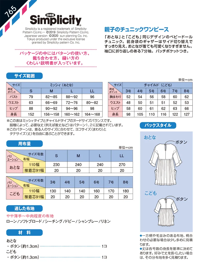 パターン 型紙 親子のチュニックワンピース