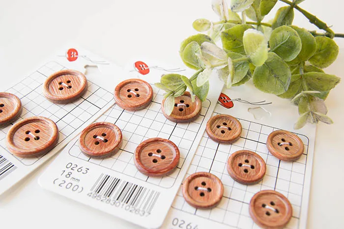 定番で使いやすいウッドボタン。
