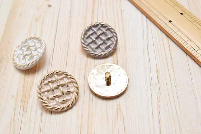 ツイード調ではありますが、どこか涼しげな仕上がりの素敵なボタンです。