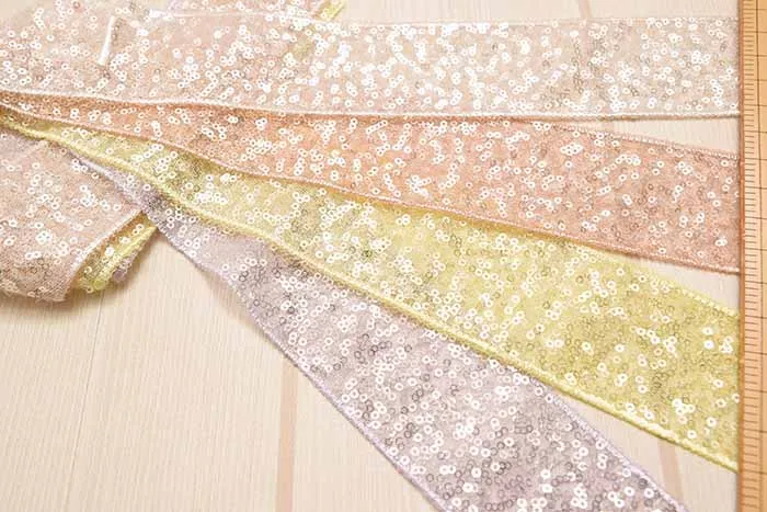 布やチュールなどに透かし模様の部分にスパンコールを施したもの。