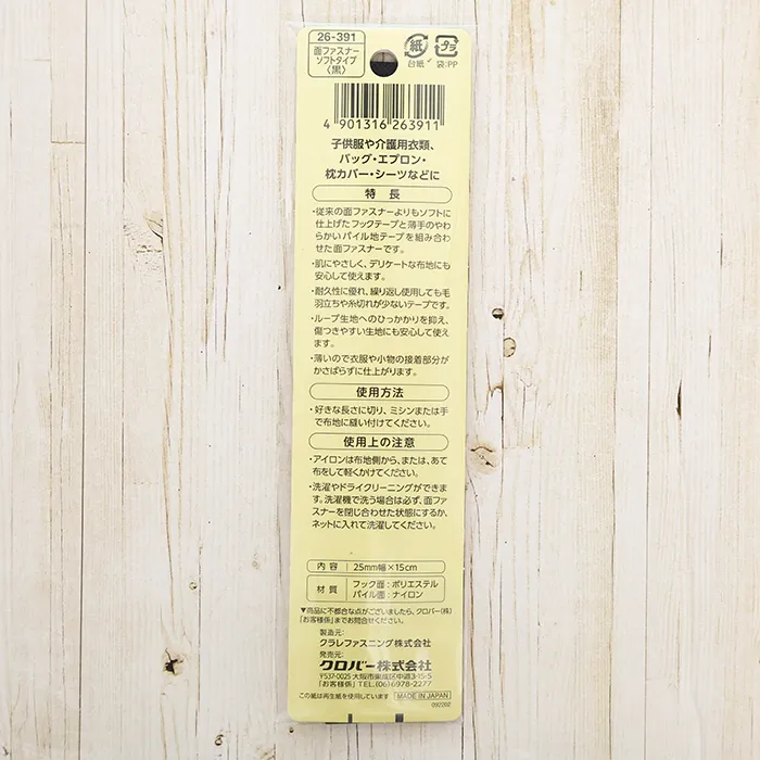 クロバー 面ファスナー ソフトタイプ 25mm幅 黒