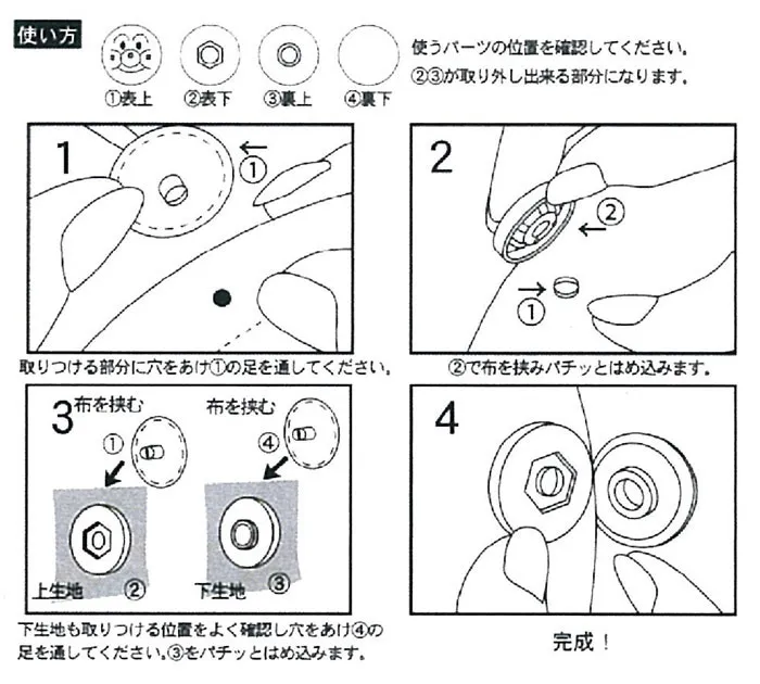 生地が薄い場合は必ず当て布などして生地に厚みを持たせてから取り付けてください。。