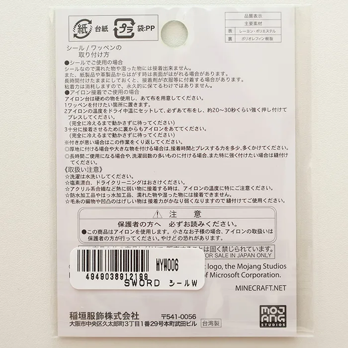 「マインクラフト」シリーズのシールワッペンです。