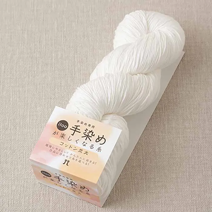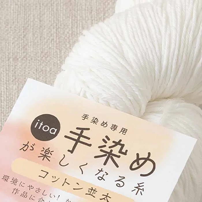 糸自体の加工は洗いと下晒し(きれいに染色できる漂白工程)と柔軟仕上げまで施しているので、染料定着が非常によく、手軽に染色工程をお楽しみいただけます。