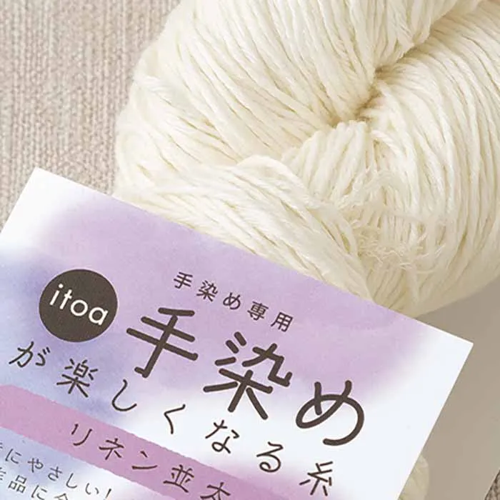 色がきれいに染まるようホワイトリネンを使用し、糸自体の加工は洗いと柔軟仕上げまで施しているので、染料定着が非常によく、あとは染色部分だけをお楽しみいただけます。