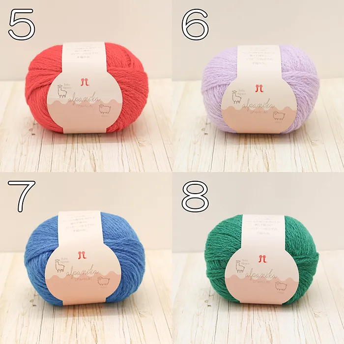 ベビーアルパカのしっとり感とウールの弾力を活かした並太糸。