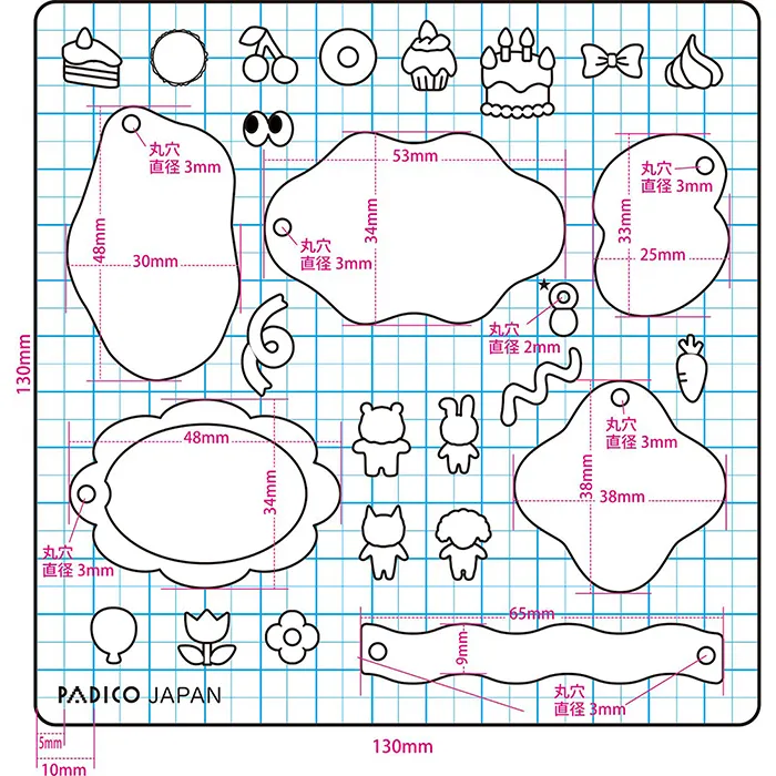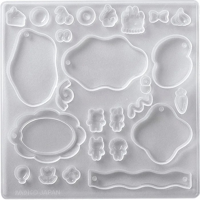 ウェーブの形がオシャレな6種類のプレートと、スイーツ系などの20種類のパーツが揃っています。プレートやパーツ単体でアクセサリーなど、アレンジ無限大!