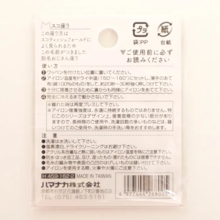 ※アイロン接着強度は、永遠に持続するものではありません。特にこのシリーズはデザイン上、接着面積の少ない部分がありますので、長時間のご使用や、洗濯回数の多いものなどは、縫い付けてのご使用や、洗濯時の手洗い等をおすすめします。