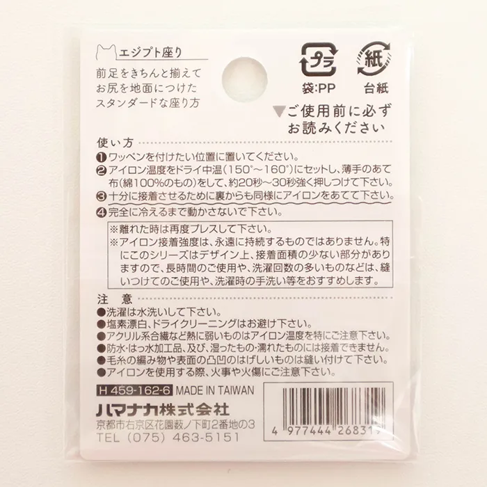 ※アイロン接着強度は、永遠に持続するものではありません。特にこのシリーズはデザイン上、接着面積の少ない部分がありますので、長時間のご使用や、洗濯回数の多いものなどは、縫い付けてのご使用や、洗濯時の手洗い等をおすすめします。