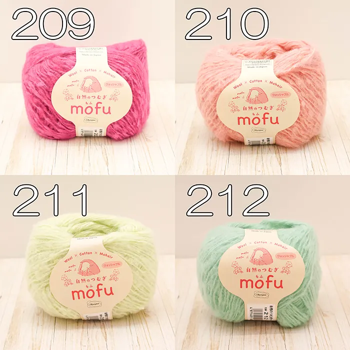 綿を起毛させているのでお肌の刺激になりにくく、モヘアなどの起毛糸のちくちくが苦手な方にもお手にとってほしいやさしい糸です。
