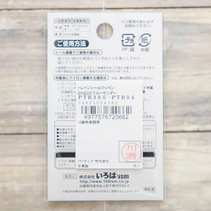 取り付けたい部分の汚れやほこりを取り、台紙からワッペンをはがし接着面を下にして取り付けたい部分に貼ってください。