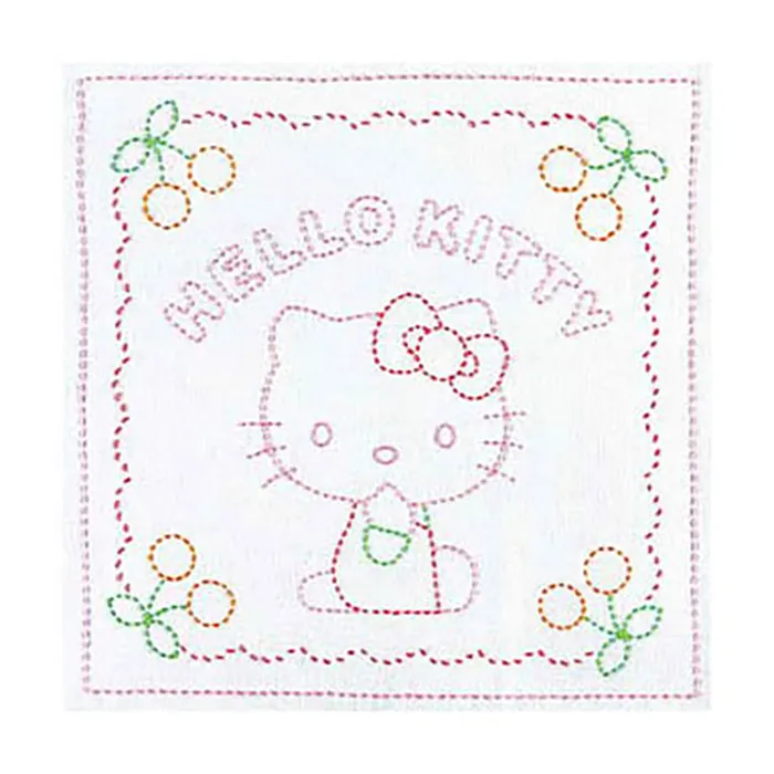 刺し子花ふきんキット ハローキティとさくらんぼ