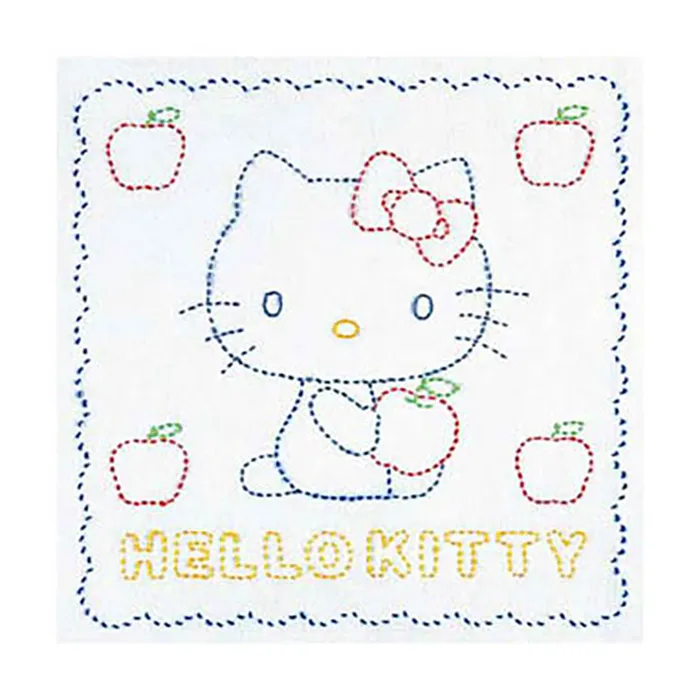 刺し子花ふきんキット ハローキティとりんご