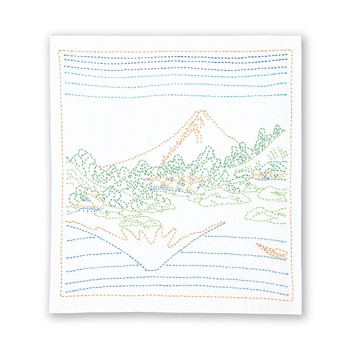 刺し子花ふきんキット 葛飾北斎 富嶽三十六景 甲州三坂水面