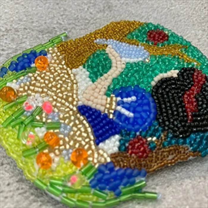 童話の世界をビーズ刺しゅうで表現しました。