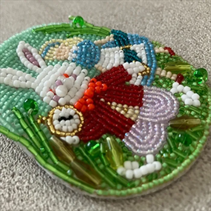 レシピに沿って刺すだけでビーズでみっちりのビーズ刺しゅう作品が完成します。