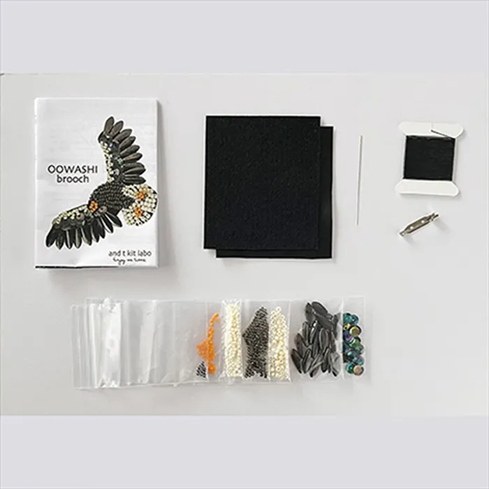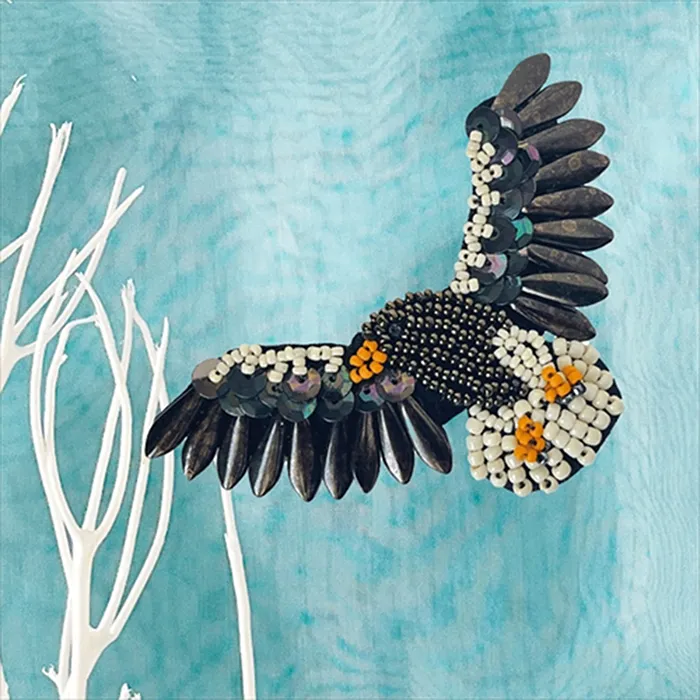 誰でも直感的に進められるビーズ刺しゅうに心躍るスパングルや変形のビーズなども加わって、身につけてお出かけするのが楽しくなる鳥刺しゅうブローチです。