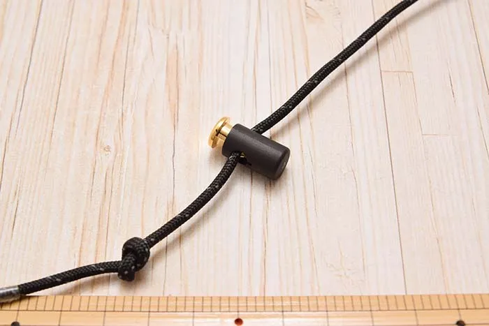 コードストッパーにはバネが入っているので、そこを押して出てきた穴に紐を通せばOKです。