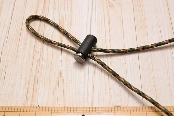 コードストッパーにはバネが入っているので、そこを押して出てきた穴に紐を通せばOKです。