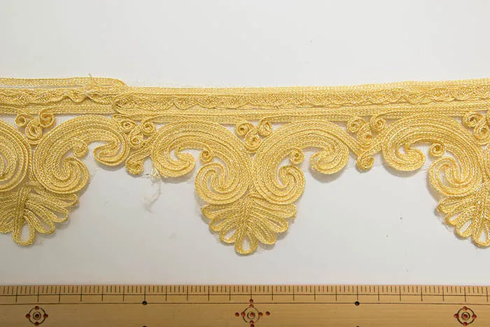 ゴールドとシルバーの立体的で上品なレースです。