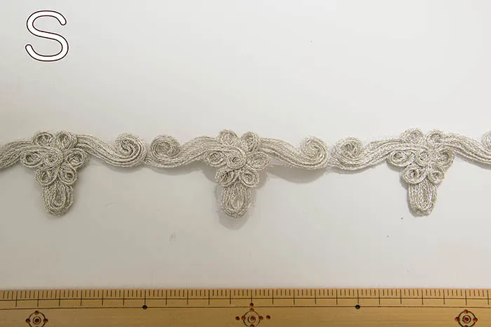 ゴールドとシルバーの立体的で上品なレースです。