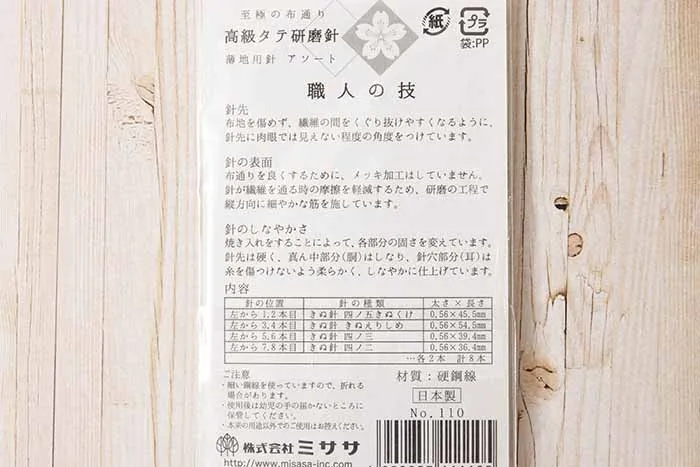 そのため、布通りが良く滑らかな針になっています。