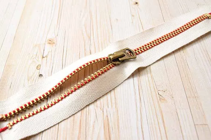 セルビッチのファスナーなので端を隠さずそのままミシンでたたいてもおしゃれな仕上がりに。