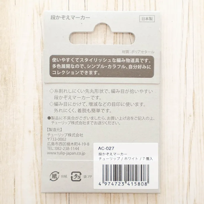 編み目にかけて、増減などの目印に使います。外れにくく、着脱も簡単です。