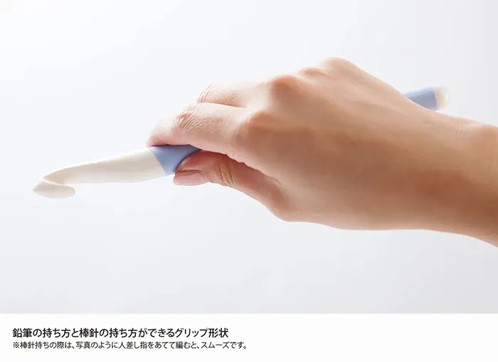 鉛筆持ちで編む際に、握りやすい太さと理想的な形状。