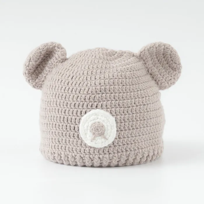 ベビーサイズで、チャーミングなクマさんの耳と、中央の鼻モチーフがポイント。