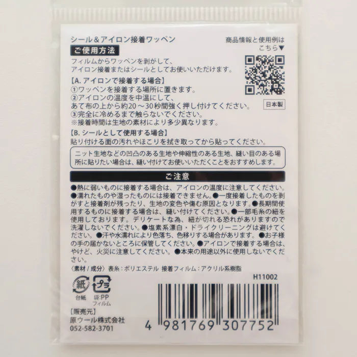 フィルムからワッペンを剥がして、アイロン、またはシールとしてお使いいただけます。