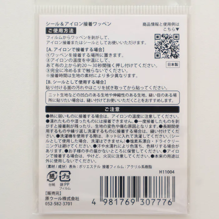 フィルムからワッペンを剥がして、アイロン、またはシールとしてお使いいただけます。