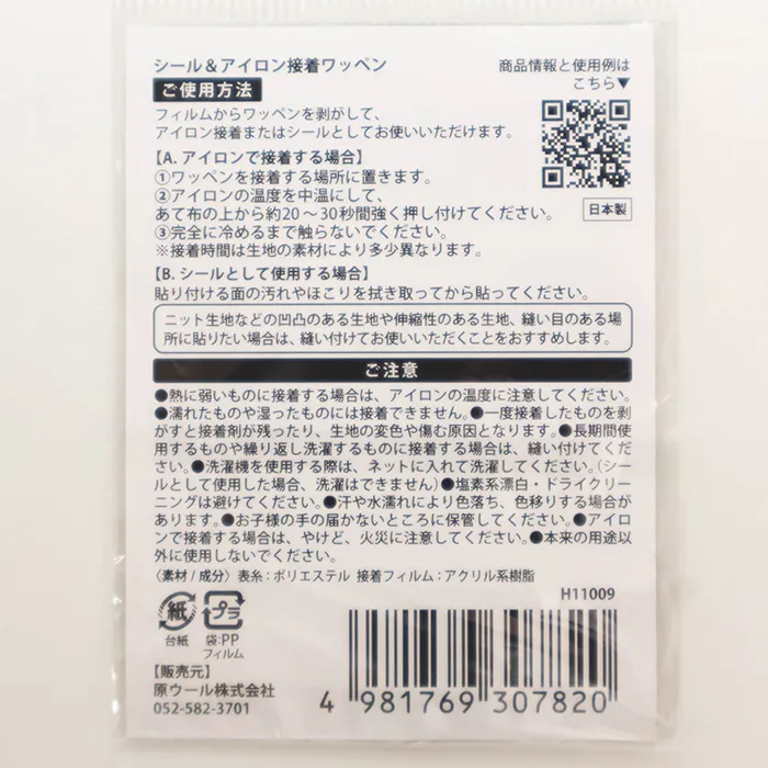 フィルムからワッペンを剥がして、アイロン、またはシールとしてお使いいただけます。