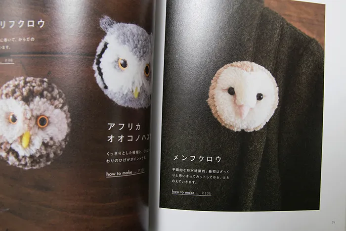 シマリス、うさぎ、ハリネズミ、レッサーパンダ、ハムスター、犬、猫、鳥、オオカミ、ナマケモノ、シロクマ、羊などなどいろんな種類の作り方が載っています。