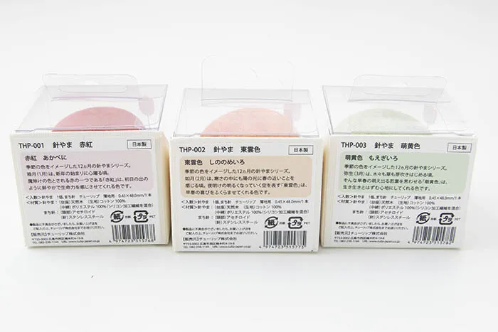 針が錆びにくいようシリコン加工された綿が入っているので針が傷みにくく長く使えます。