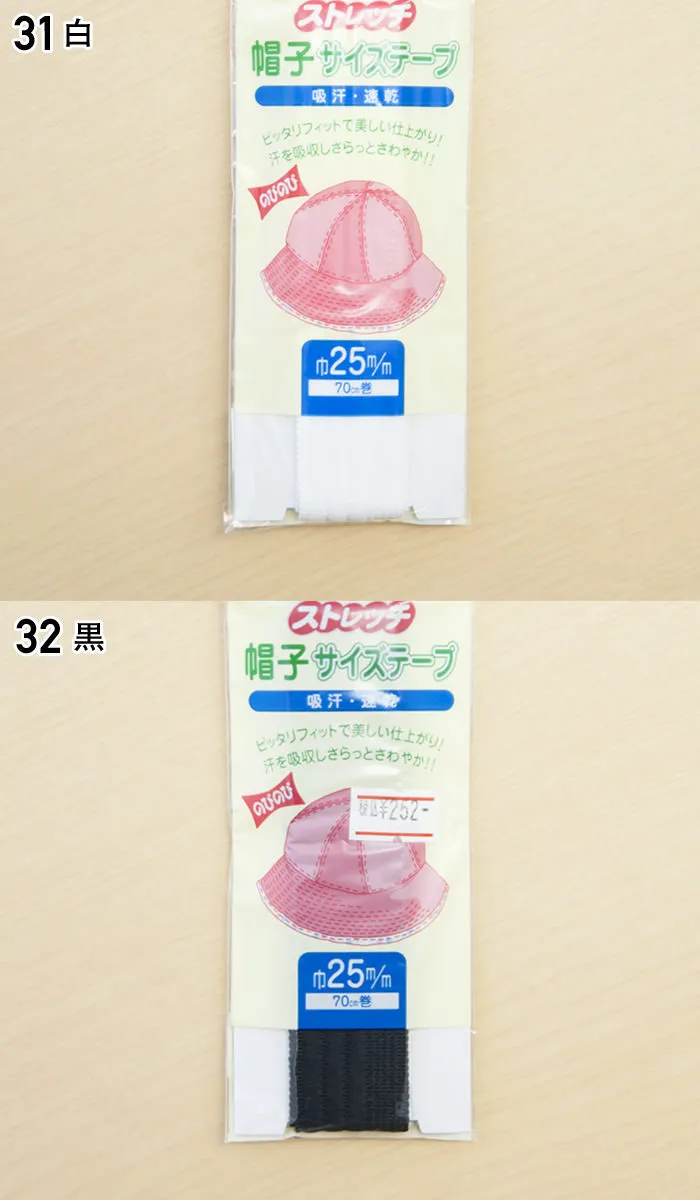 ストレッチ 帽子サイズテープ 巾25mm