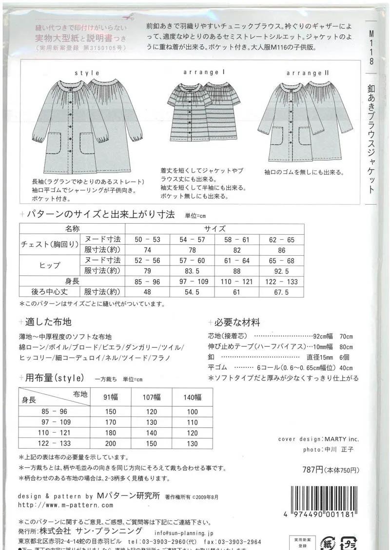 mパターン研究所 釦あきブラウスジャケット(85cm~133cm)