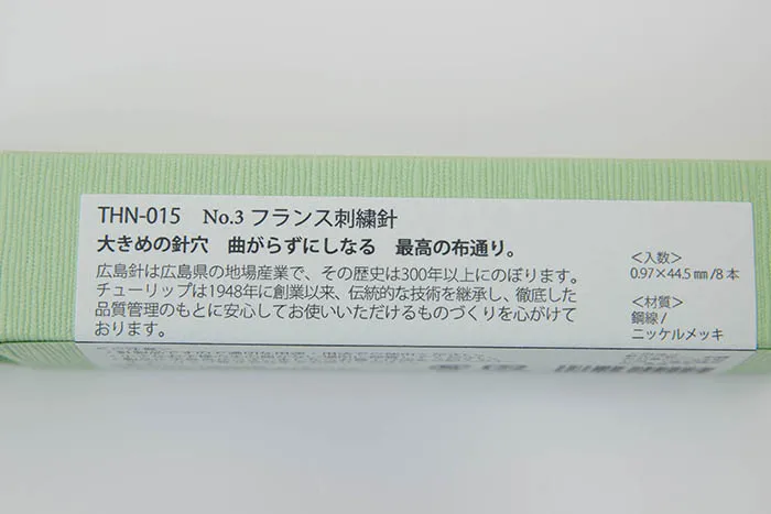 ステッチの布通りを、ある程度決めてしまうのが針先形状。チューリップの針は、鋼(はがね)の特徴である「強靭さ」と「耐磨耗性」を活かすとともに、高精度な研磨加工を繰り返すことで理想的な針先形状を生み出しました。